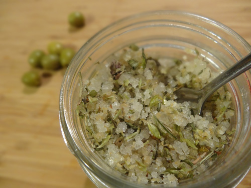 Done? Good. Just in time to get back to the soup! Turn down the heat and use an immersion blender. Add a pinch of salt and taste. Let it heat about 5 minutes more.