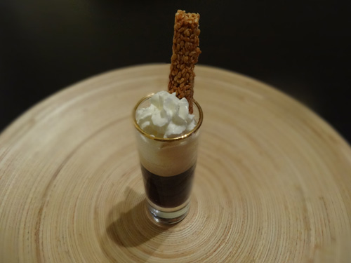 So as a big warm THANK YOU to all of you who voted for or follow Trending Recipes, here's a surprise drink: a macadamia nut nespresso with chantilly, some drops of Monin's hazelnut syrup and a stick of a honey and sesame hazelnut bar (I used Cofresh's). Enjoy and have a wonderful week!