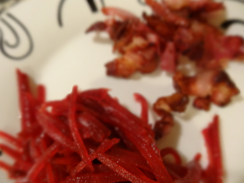Then I fried some bacon, and set it aside, along with some shredded beetroot.